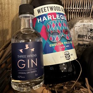 We have paired the Harlequin Weetwood Ale with this basket, the gin pairs very well with the Crabtree serve with tonic and a slice of Lime for a burst of citrus. included is a jar of Chutney also made in Malpas.